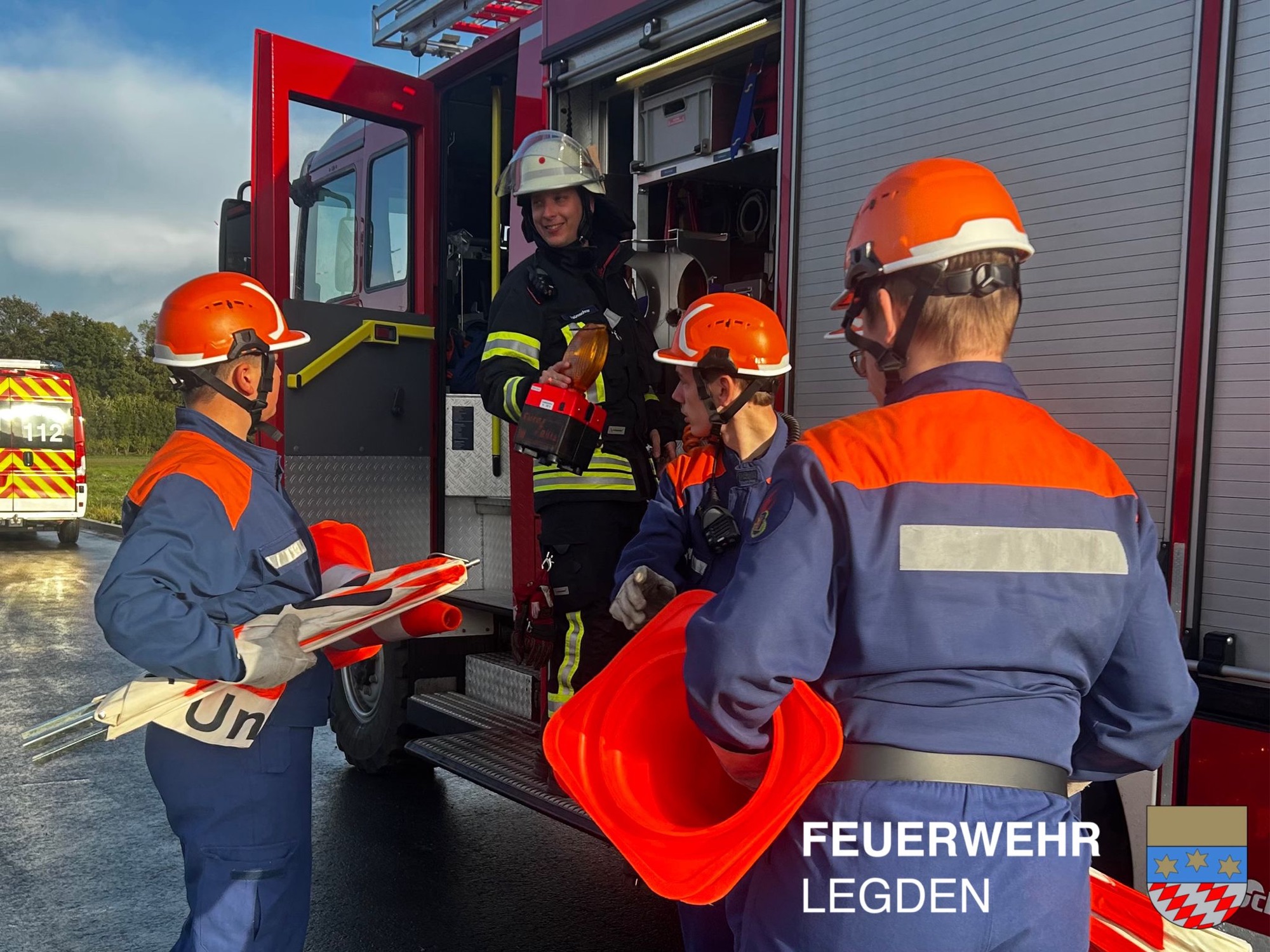 Im Rahmen einer realistischen Einsatzübung, die einen Verkehrsunfall darstellte, wurden wir als nachbarschaftliche Hilfeleistung nachalarmiert und übernahmen dabei vor allem die Straßensperrung sowie die Patientenversorgung. 🚑